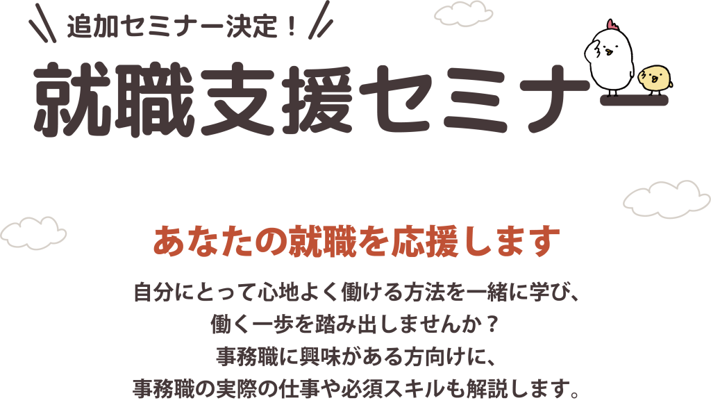このセミナーは雇用保険の支給に必要とされる求職活動(1回)に認定されます。
